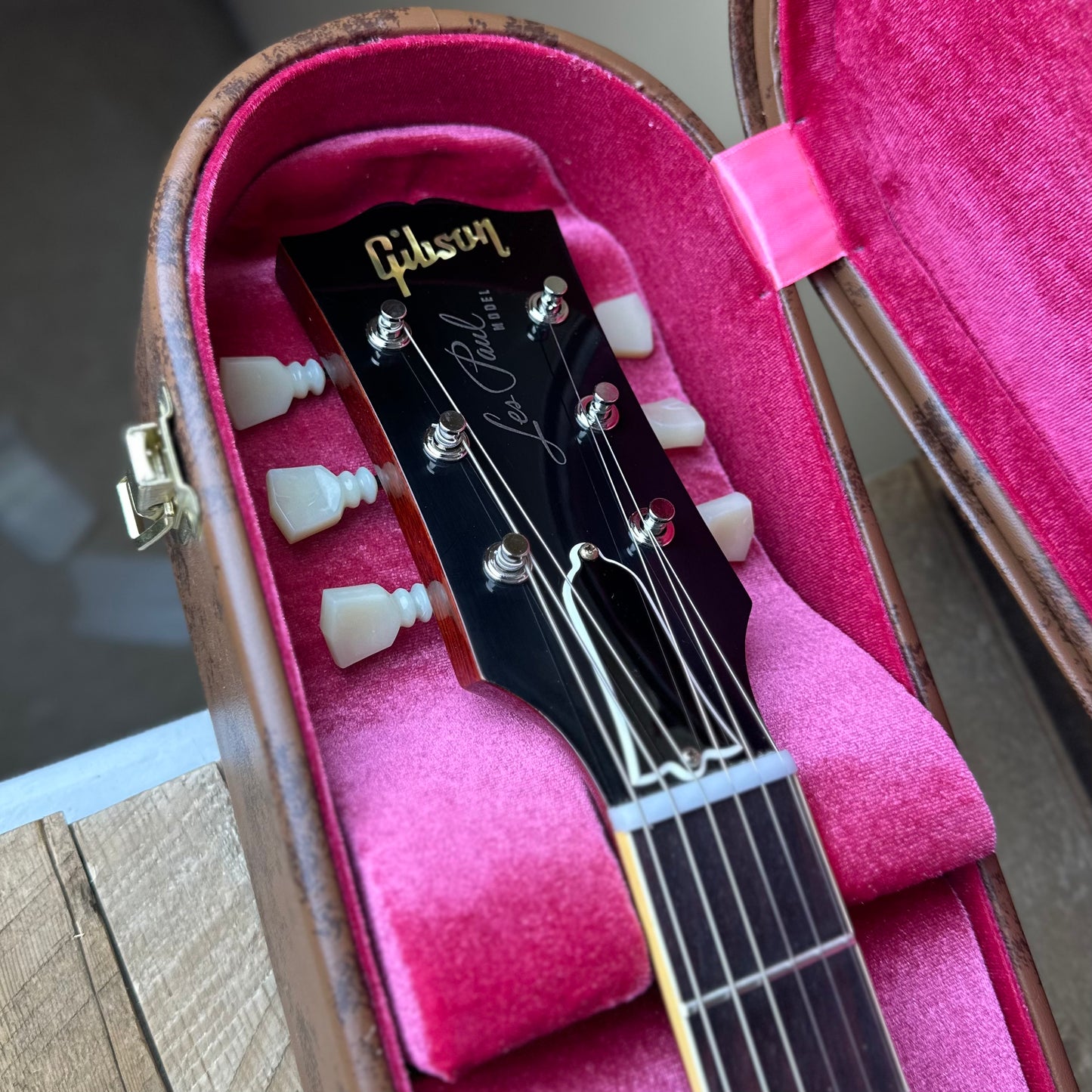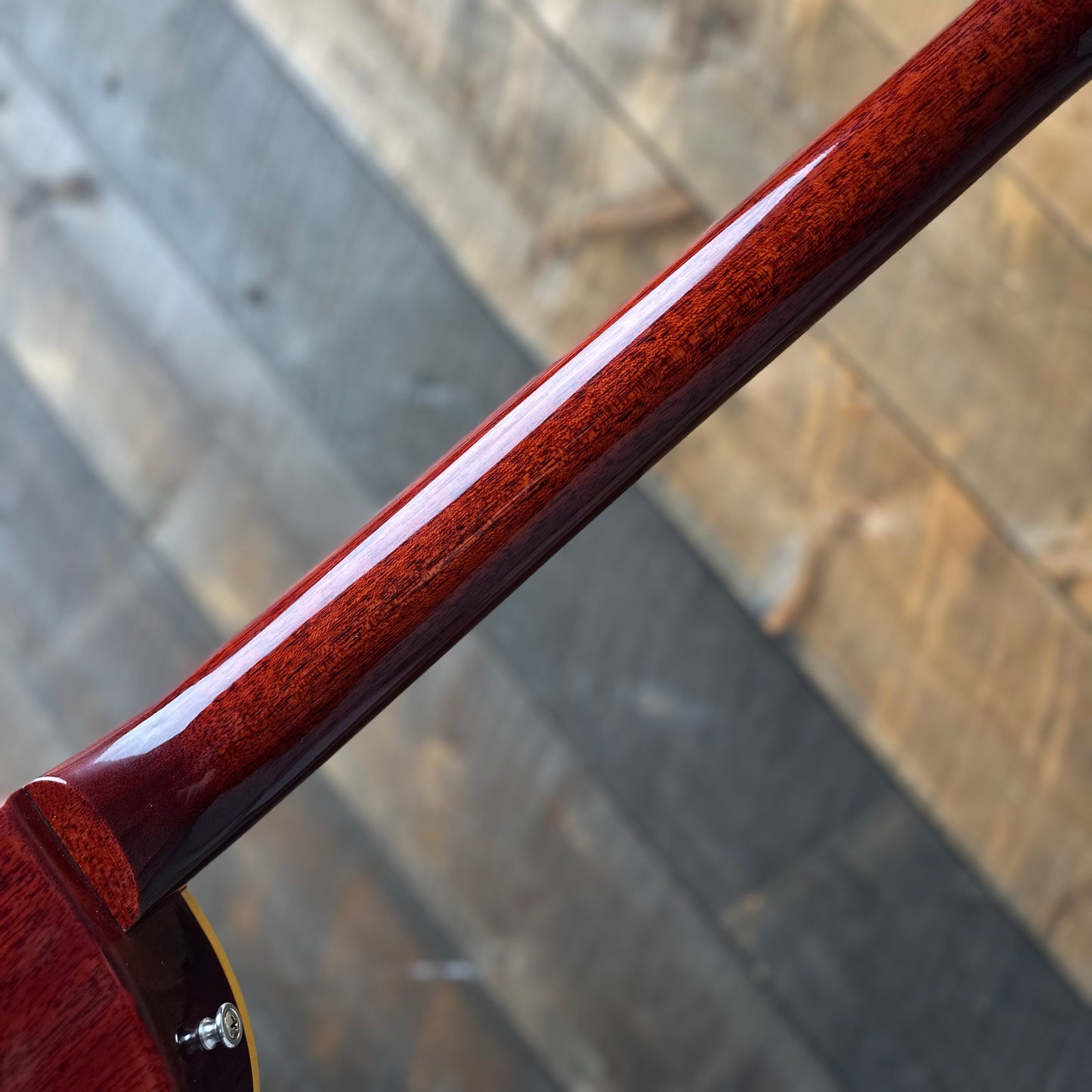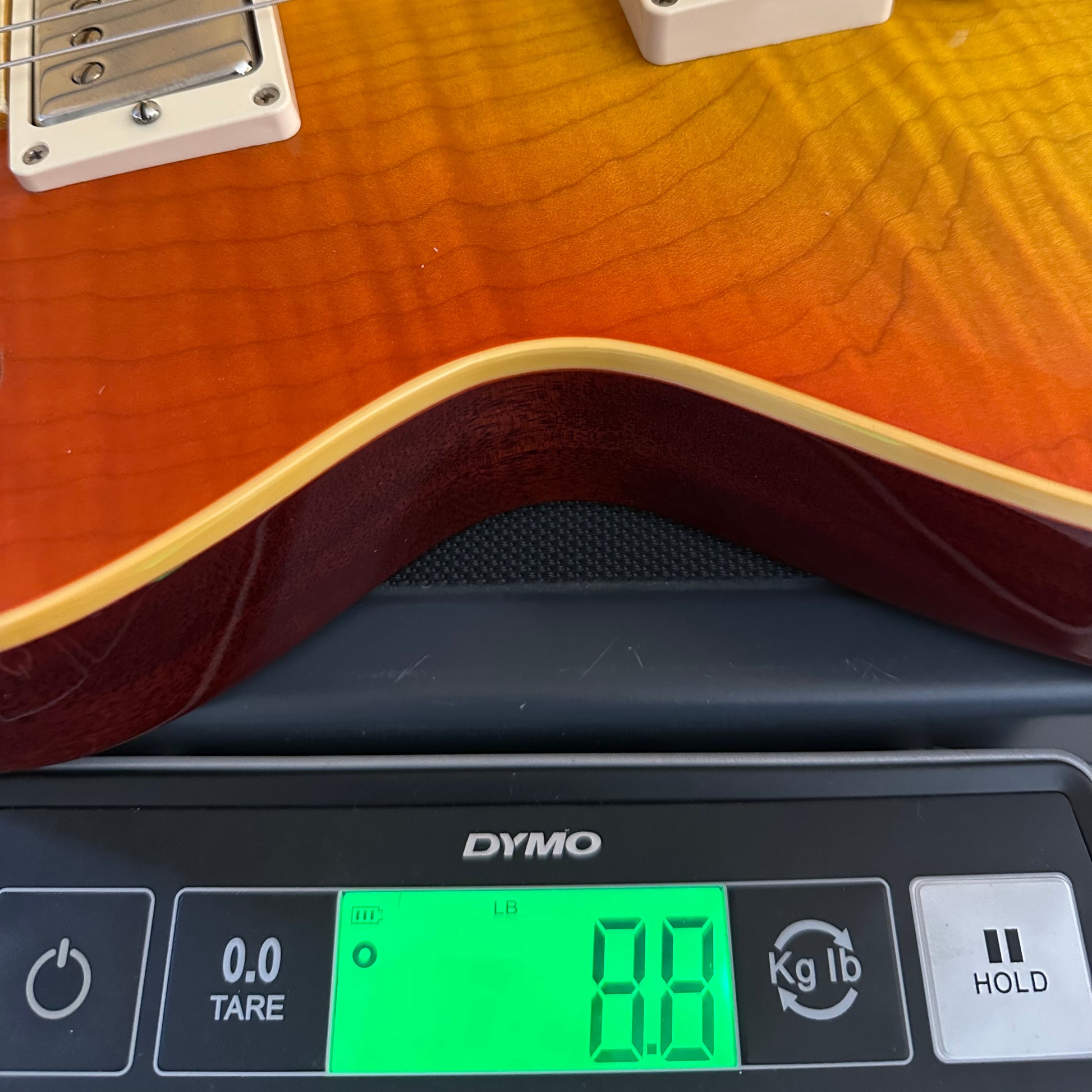 Such a beautiful top on this one—the Tangerine Burst really brings out all the unique figuring patterns. This guitar looks and feels alive.