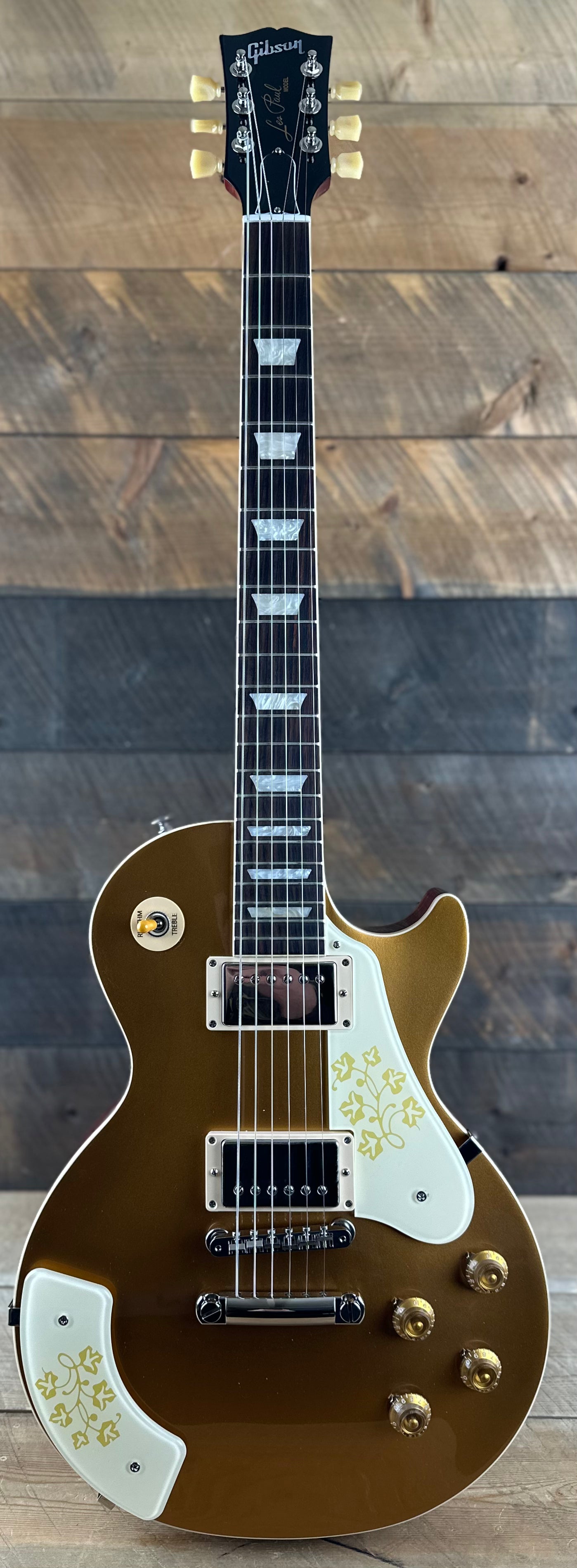 Born Iris Colleen Summers on July 7, 1924, Mary Ford was an accomplished guitarist, vocalist, and actress who was among the biggest recording artists of the early 1950s. Through her career in country music and her connections with Gene Autry and Eddie Dean, she developed a musical partnership with Gibson icon Les Paul that led to their marriage in 1949. In 1951 alone, the duo sold over six million records, and between 1950 and 1954, they recorded a string of 16 top-ten hits that showcased Mary’s rich, smooth voice, complex, perfectly executed harmonies that she sang along with herself through multi-track recording and overdubbing (a groundbreaking recording technique for the time), and versatile guitar playing that seamlessly blended country, jazz, and pop. In 1951, Mary and Les influenced the design of the ES-295 hollowbody with a custom order. In 1958, it is believed that one Les Paul™ Goldtop model with an ES-295-style floral pickguard and matching armrest was made at the request of Mary Ford. Now, Gibson is proud to release the Mary Ford Les Paul Standard, based on that one-of-a-kind original. The Goldtop finish is accented by a Vintage Cherry back—a rarity for a Goldtop model. In addition to the cream and gold floral pickguard and armrest, it also features a mahogany body with a maple cap, a mahogany neck with a rosewood fretboard and SlimTaper™ profile, and is powered by a pair of Burstbucker™ pickups, with a Burstbucker 2 in the neck position and a Burstbucker 3 in the bridge position. A hardshell case completes this offering that honors one of the most beloved and innovative artists of the 20th century.