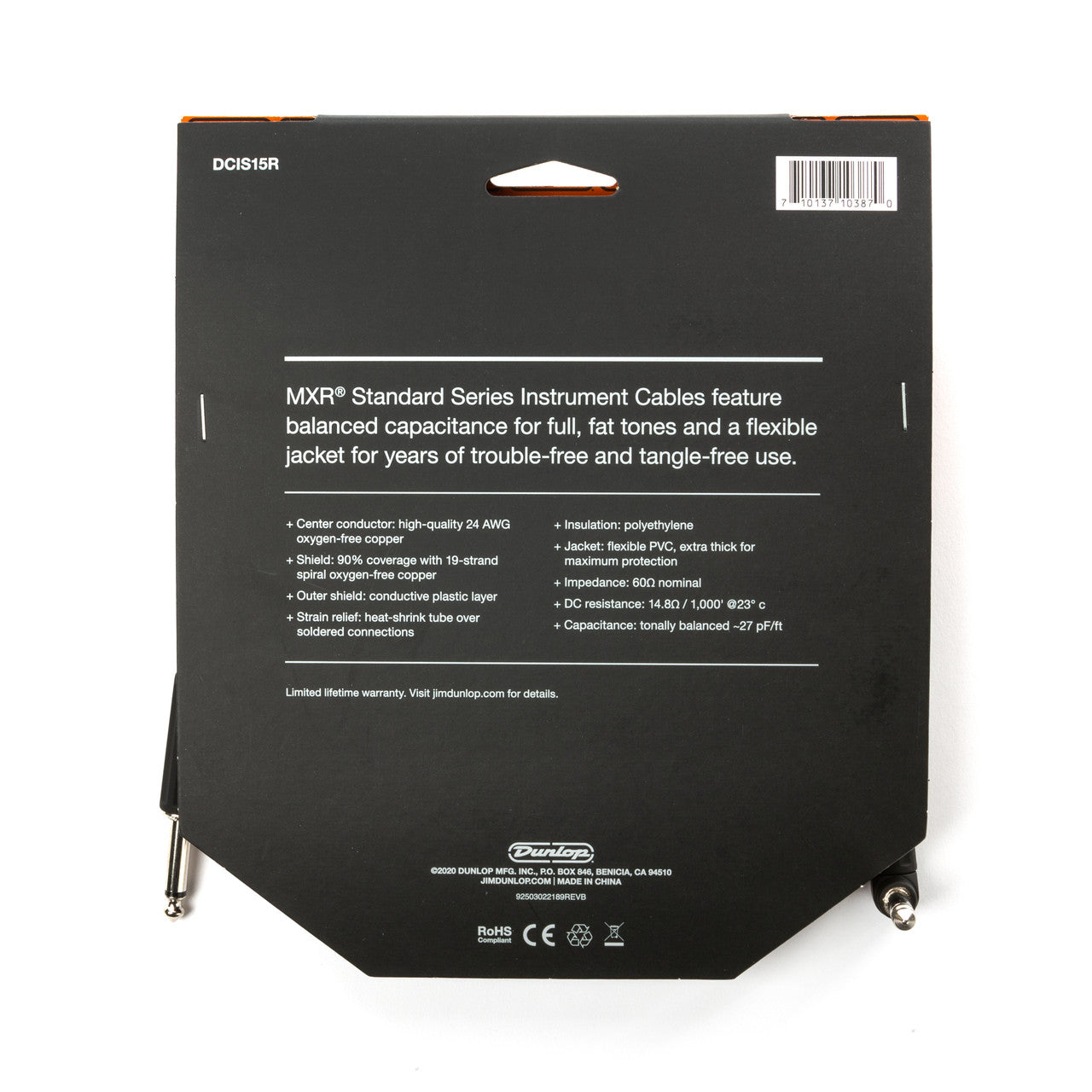 Dunlop Manufacturing, Inc. warrants MXR-branded cables to the original owner for the life of the product. This limited warranty covers only defects in material or workmanship and does not cover injury to the user or incidental or consequential damages or costs. Dunlop's warranty liability is limited to product replacement. In the unlikely event that there is a problem, please return the cable and the dated sales receipt to us and we will repair or replace it.