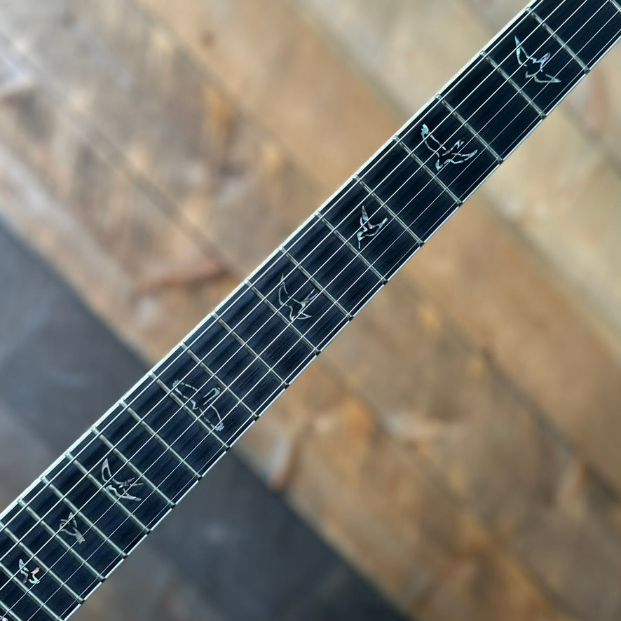 A standout in the PRS family, the Mark Holcomb model features a mango top, a 25.5” scale length maple neck, and an ebony fretboard with a 20” radius—crafted for speed and precision. Equipped with Holcomb’s signature Seymour Duncan Scarlet and Scourge pickups, this guitar delivers focused low-end punch and crystal-clear articulation, ensuring complex chord voicings, coil-splitting, and drop tunings remain defined and dynamic. The 5-way blade switch unlocks a range of tones, from dual humbuckers in position three to coil-split options in positions two and four.