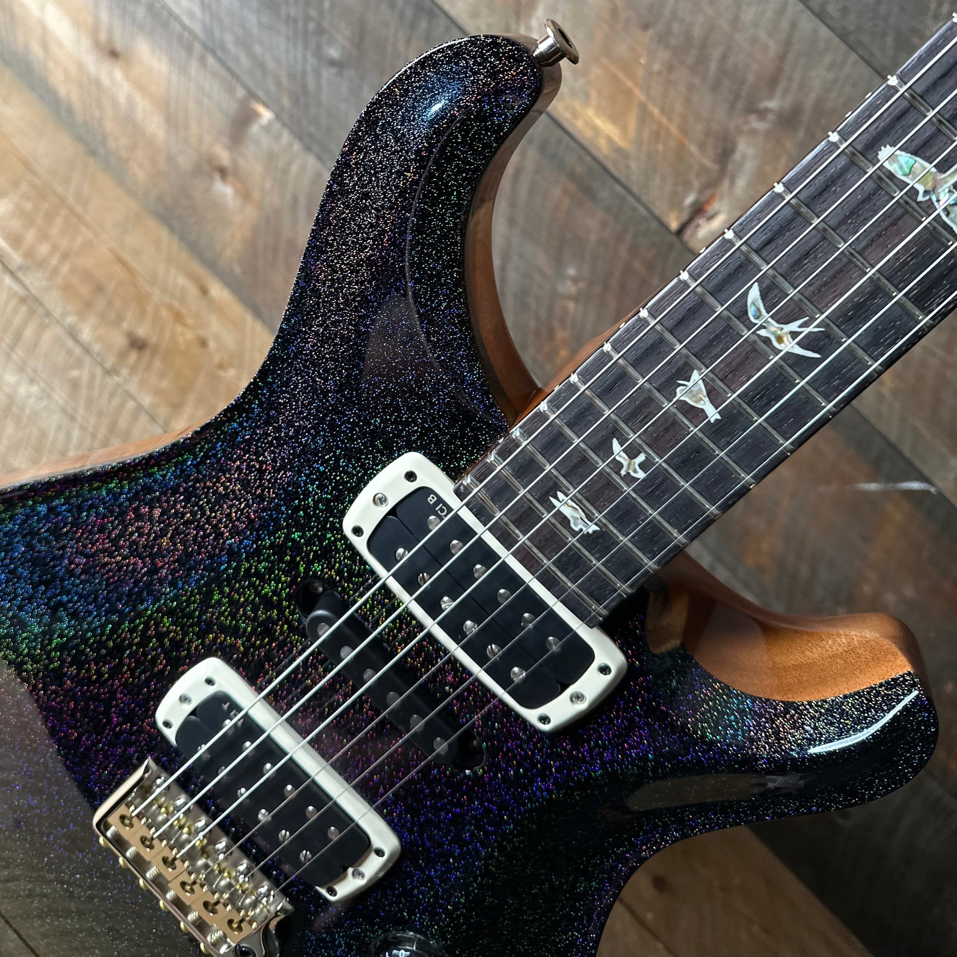 PRS Modern Eagle V Rare One Of A Kind!! - Black Rainbow Holoflake Top & Binding (Natural Back) 418869