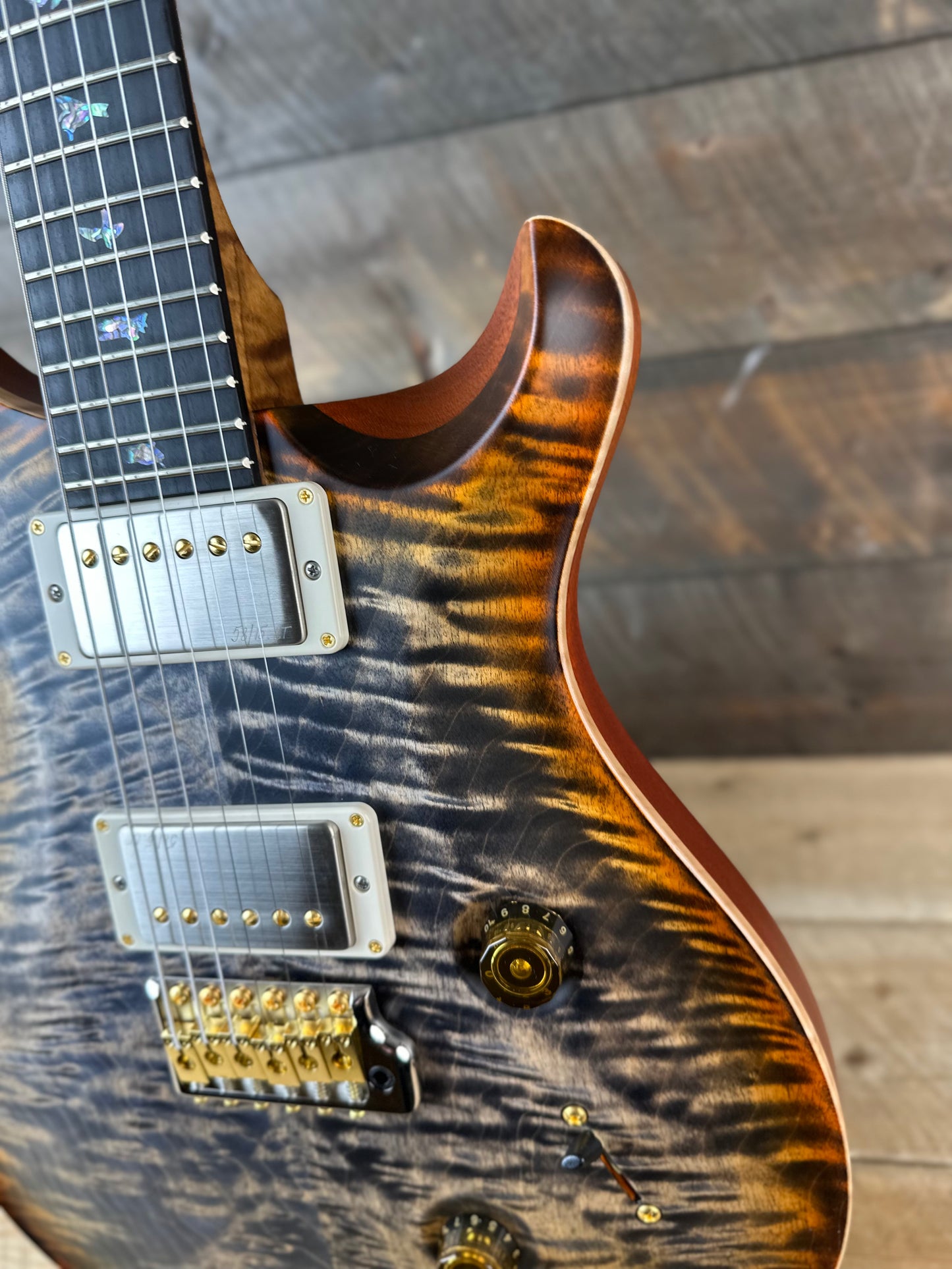PRS Wood Library Custom 24 Amazing Highly Figured 10 top!!, Torrified Flamed Maple Neck, Ebony FB - Burnt Maple Leaf 391903