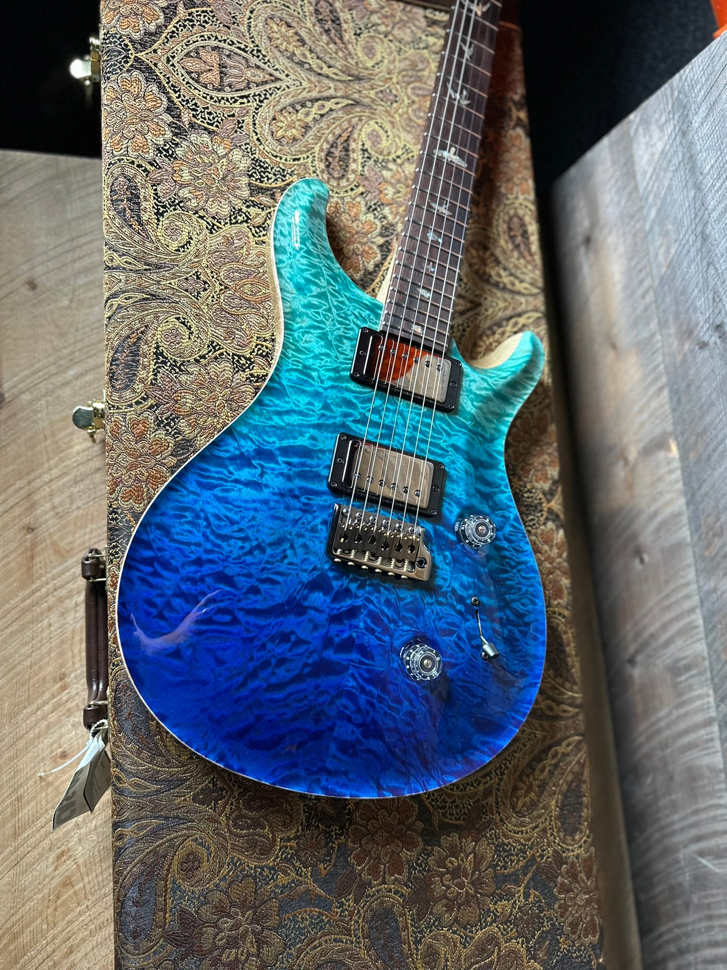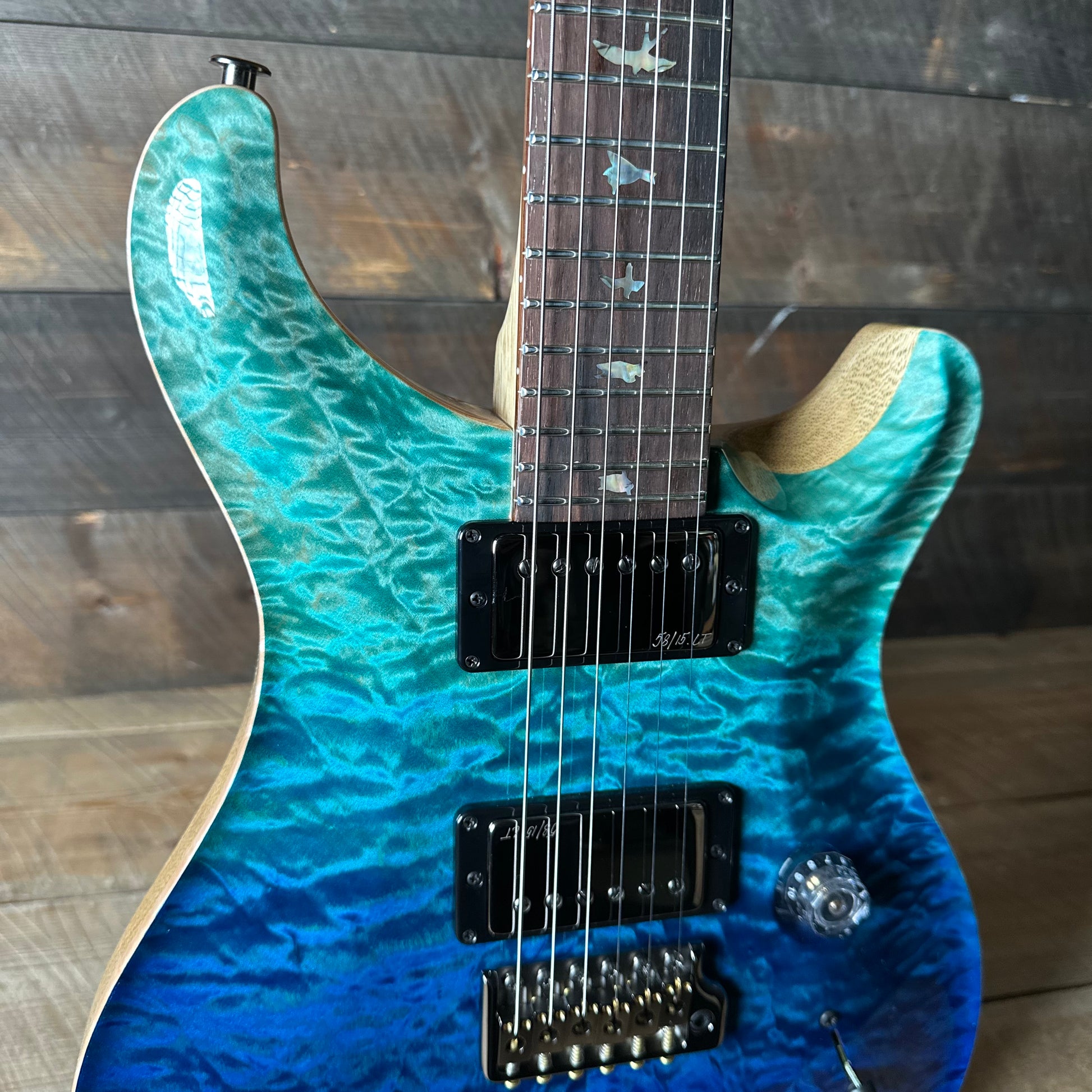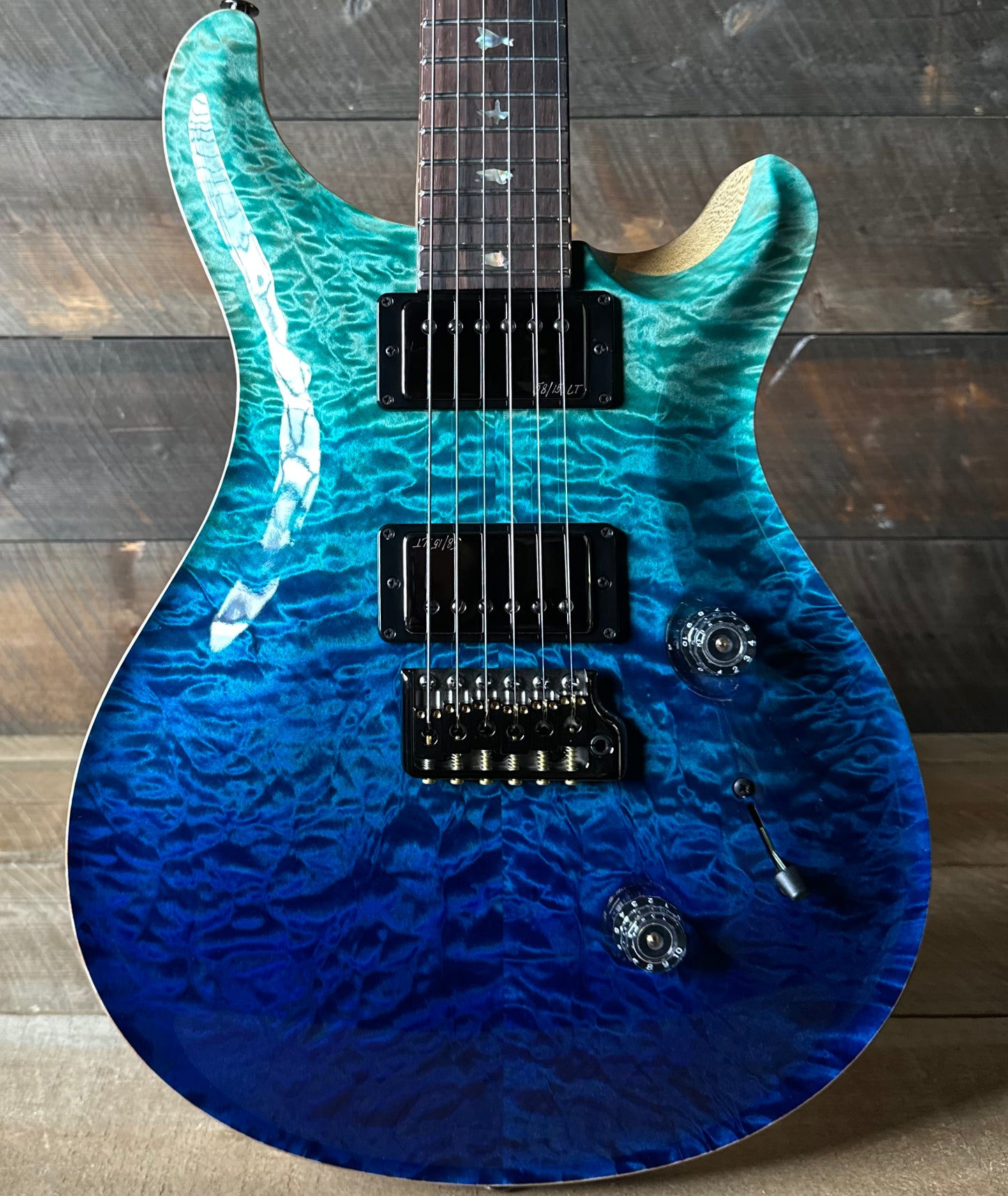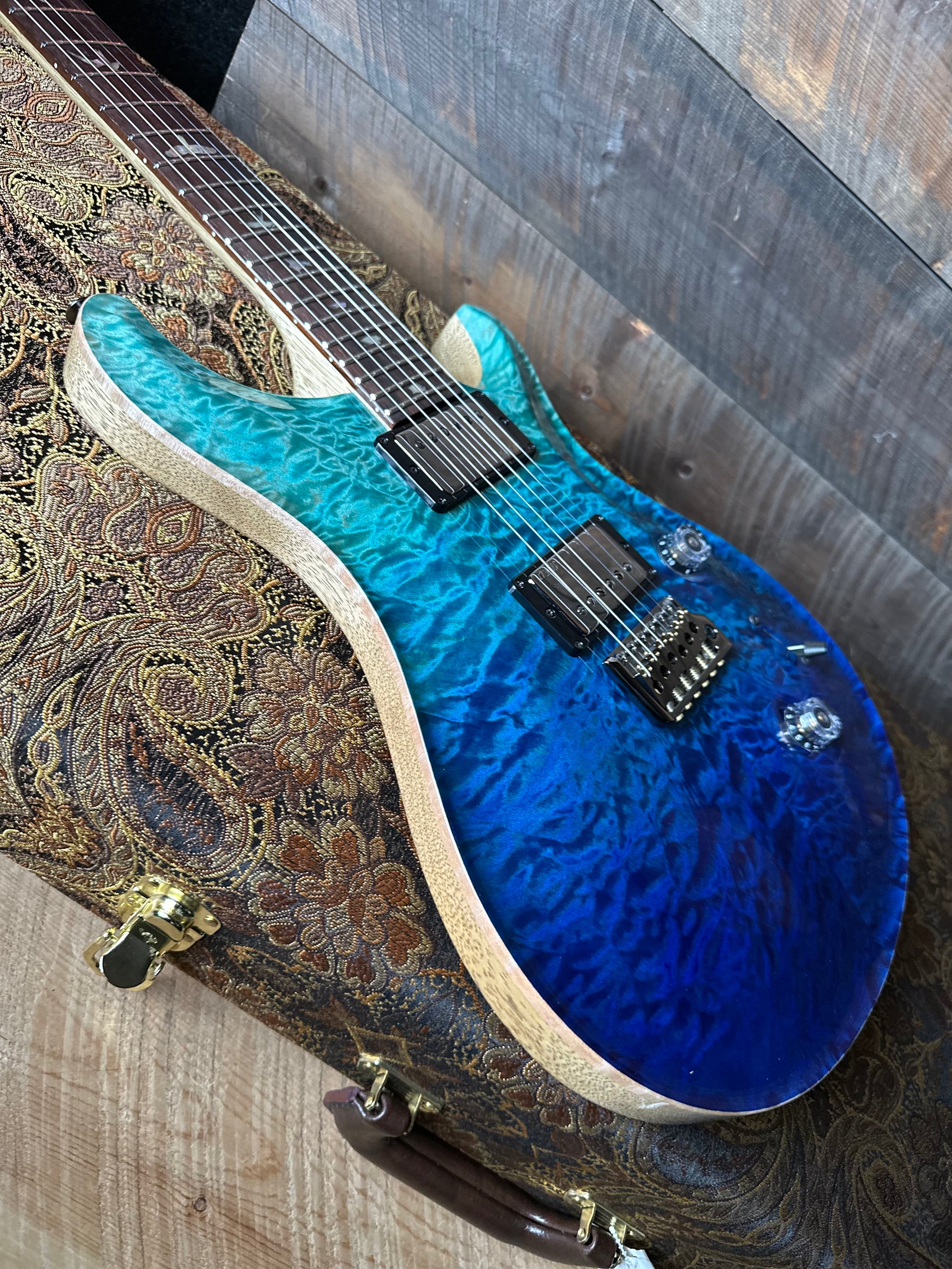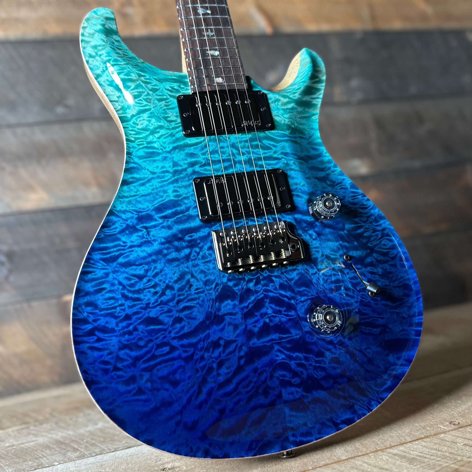 PRS Wood Library Custom 24 Quilt Top Brazilian Rosewood Fretboard! - Blue Fade 408162